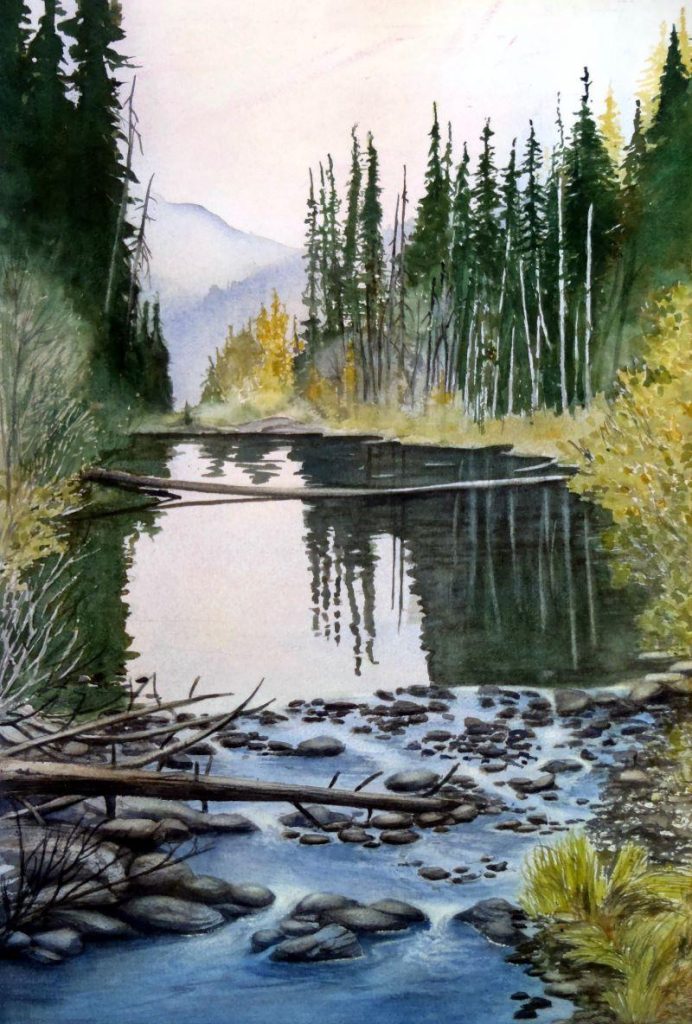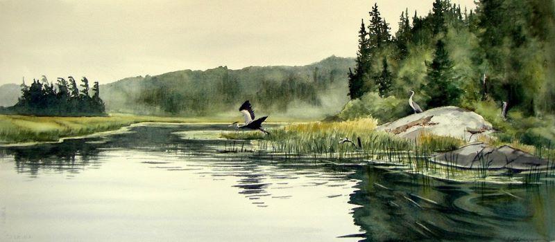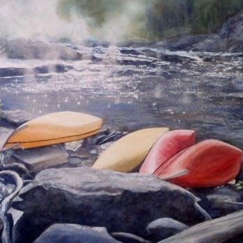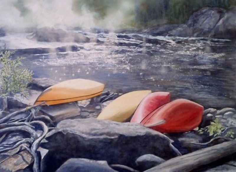 An avid traveler and outdoor enthusiast, Donna’s experiences when hiking, paddling and wilderness camping provide the inspiration and subject matter for her watercolour paintings. Realistic landscapes, floral and nature studies portray her love of the outdoors and fascination with the intricate detail inherent in nature. Donna studied art history and design at Trent University, and has a Visual Arts Specialist certificate in art education. She has painted with watercolour for more than 35 years, and developed her skills in this challenging medium by taking workshops with various artists. She has shown her work at galleries and art festivals since 1981, and currently her paintings can be viewed at her home studio in Huntsville.